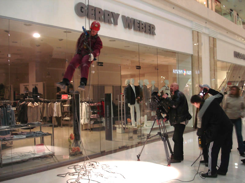 С помощью промышленных альпинистов нашей компании организовывалась видеосъемка сюжета телекомпанией